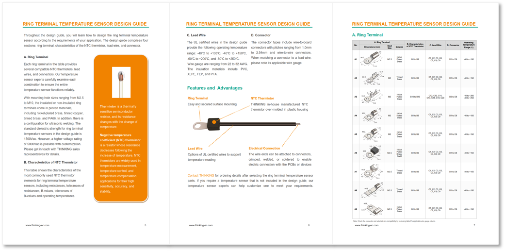 ★ 根據您的應用要求,選擇環形端子、NTC熱敏電阻、導線和連接器來構建表面溫度傳感器。